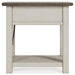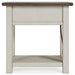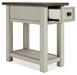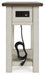 Whether your style is farmhouse fresh, shabby chic or country cottage, you’ll find this chairside end table dressed to impress. Its two-tone finish pairs weathered oak with antique white for that much more quaint character. Charming elements include a plank-and-frame style top, black faceted hardware and a smooth-gliding drawer for remote controls and more. Integrated power supply with dual USB charging ports is ideal for keeping your personal devices at the ready.