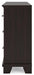 Feast your eyes on this richly versatile dresser. Its traditional-inspired dark brown finish effortlessly blends with contemporary bright nickel-tone pulls to create a stunning look that's not too stuffy or too trendy. Spacious drawers offer plenty of storage for your wardrobe and spare bed linens.